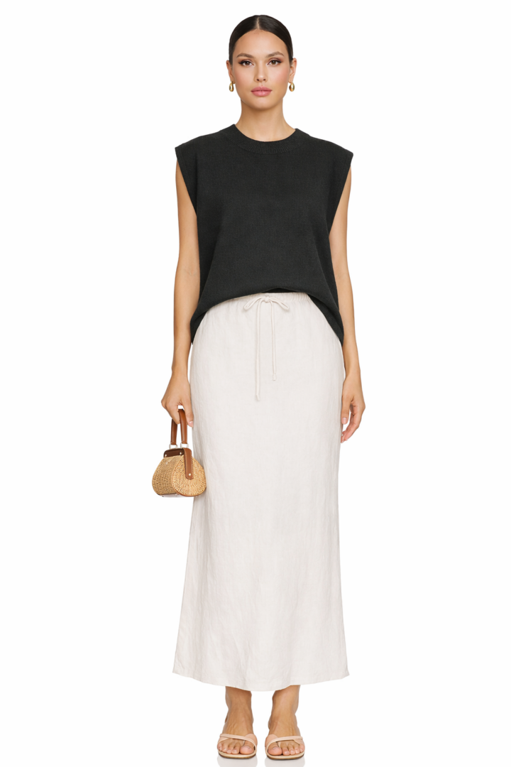 Minimalist fashion lovers, capsule wardrobe builders, and boutique shoppers will find this sweater vest endlessly wearable. Not only is it stylish, but it is also functional and timeless. Therefore, it becomes a go-to neutral knit that works season after season.