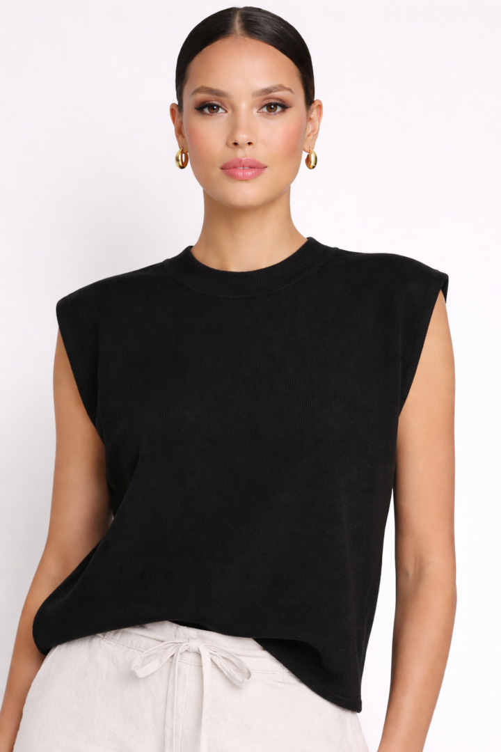 Black Women Sweater Vest. Women searching for chic neutral outfits will appreciate how versatile this black knit top truly is. Furthermore, its understated color complements cream, black, white, and denim palettes. As a result, it simplifies outfit planning while still looking refined. However, the soft knit texture adds warmth and dimension, so the piece never feels plain.