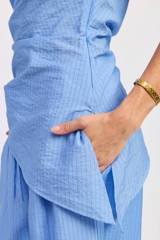 Blue and black pinstripe asymmetrical tunic top