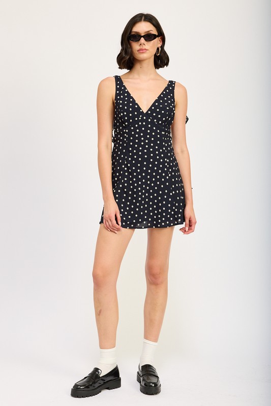 If you are searching for women’s navy mini dresses, polka dot summer dresses, open back mini dresses, or date night boutique outfits, this piece delivers versatile elegance with a modern edge.