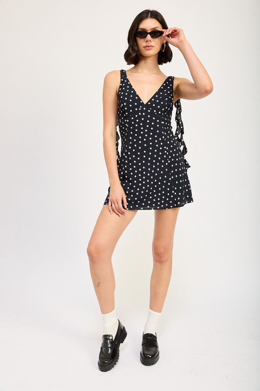 Polka dot dresses consistently rank high in Google searches, especially for women looking for classic yet trendy pieces. For that reason, this navy ruffle mini dress is a strong addition to any capsule wardrobe. It combines timeless print, flattering structure, and feminine details in one effortless design.