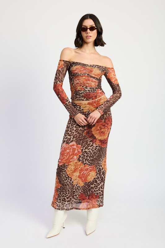 Step into bold, trend-setting style with our Orange Leopard Off-Shoulder Ruched Crop Top. This striking piece blends warm orange floral tones with a fierce leopard print, creating a unique mixed-print look that instantly stands out. Because this silhouette is trending across Instagram, Pinterest, and TikTok, it easily becomes a go-to top for women who love confident, fashion-forward outfits.